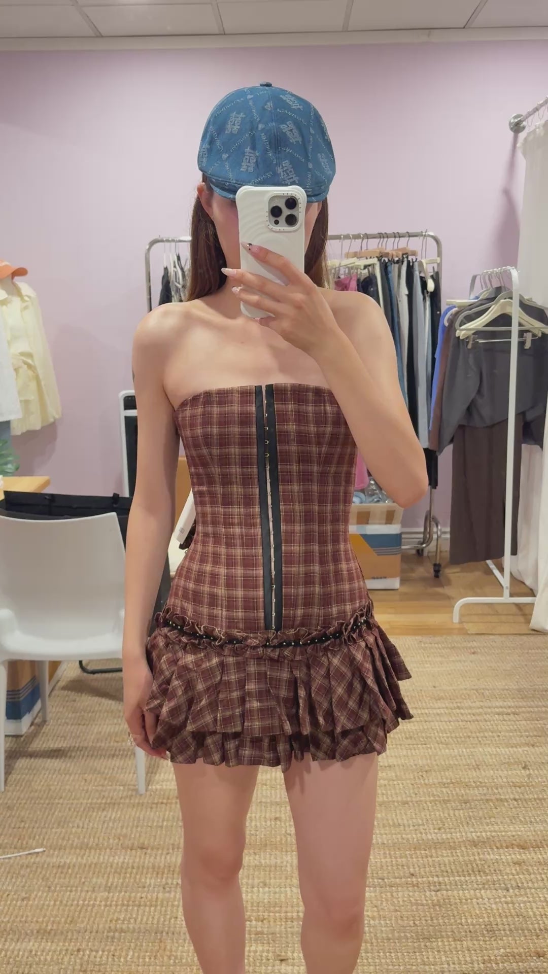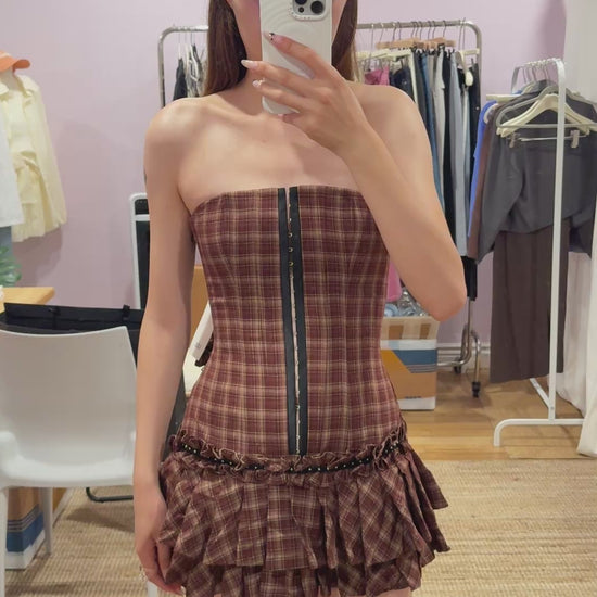 The classic brown plaid pattern brings a touch of vintage academia, while the fishbone (boning) structure adds subtle edge and sophistication. Whether styled for a casual day out or an elevated evening look, this skirt makes a statement without trying too hard.